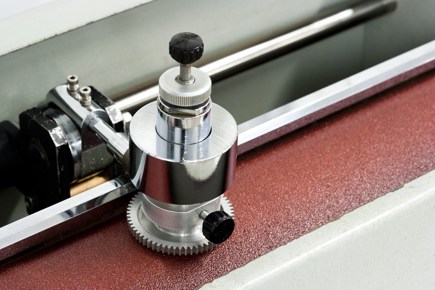 Prova di attrito e abrasione su suola per calzatura, effettuata con abrasimetro.